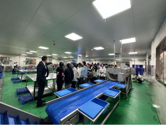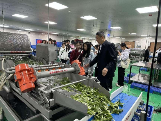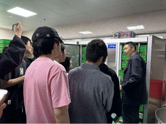 在紫薇园校区学生二食堂,同学们参观了后勤饮食部新建成的配送中心。参观中,大家详细了解了新配送中心蔬菜清洗切配生产线、米饭生产线、白案生产线等等系列设备的操作;第一次见到如此规范和先进的生产线与生产设备,大家纷纷拍照记录,围上来仔细观察。