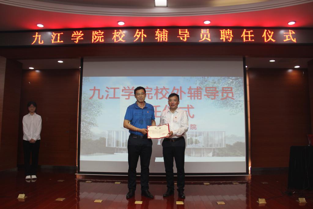 聘任仪式上,药学与生命科学学院向校外辅导员向东颁发聘书。