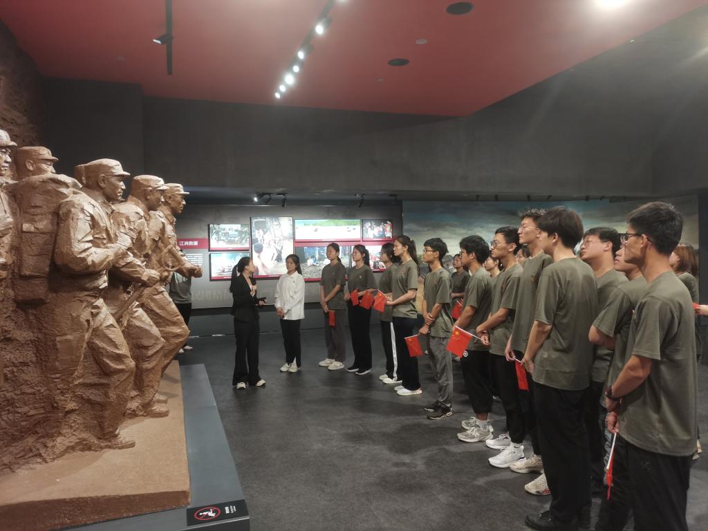 在九江九八抗洪展陈馆,运营负责人、校友曹雨晴带领同学们参观了六个展区,其中沉船堵口最为惊心动魄。在九江九八抗洪展陈馆这座煤船造型的建筑前,同学们齐心协力模拟开大船的情景,在守望相助中体验抗洪英雄力挽狂澜的壮举,致敬前辈舍生忘死的英雄气概。