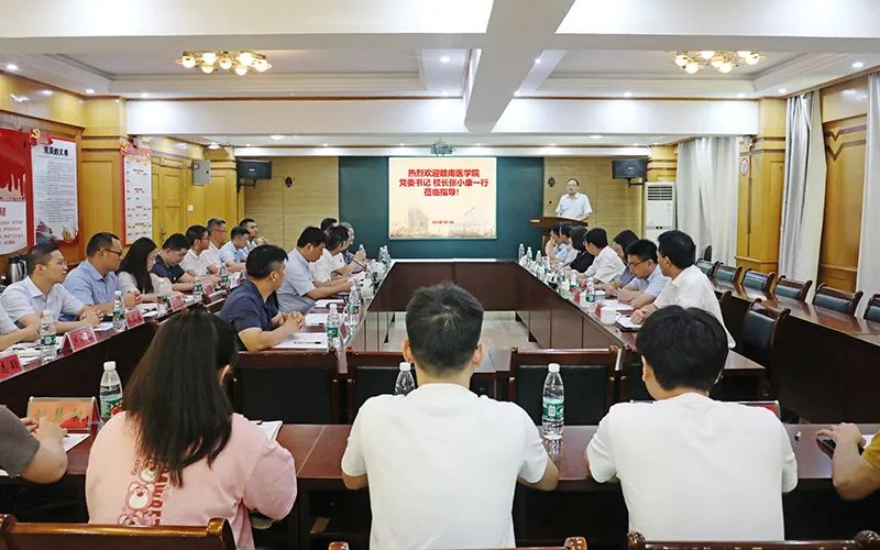 7月13日上午,赣南医学院党委书记、校长张小康带队副校长盛瑶环、党院办、研究生工作处、第一临床医学院院长负责人等,来我校附属医院走访交流和指导研究生联合培养等工作。我校党委副书记、校长陈小林,副校长夏启国、王殿元等会见或参加交流会。