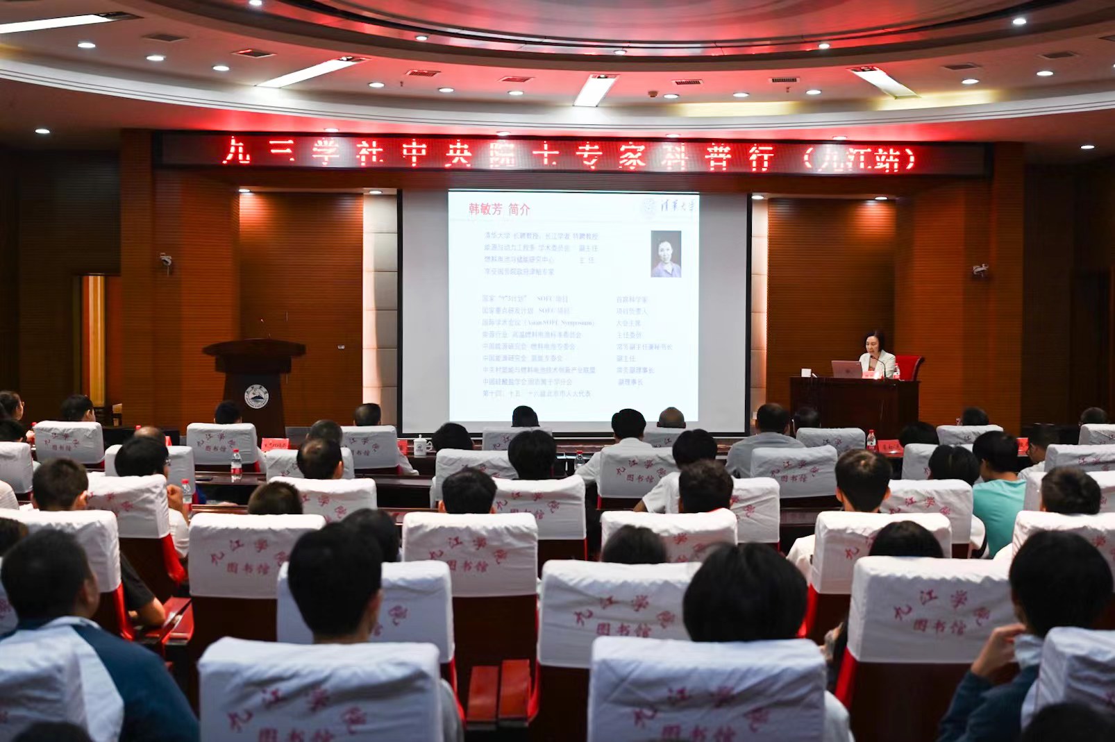 近日,九三学社中央院士专家科普行活动走进九江。9月23日,九三学社北京市委会副主委、清华大学能源与动力工程系学术委员会副主任、长江学者特聘教授韩敏芳来到九江学院,为我校师生作了题为《新能源材料助力碳中和发展目标》的学术报告。九三学社北京市委专职副主委、北京市政协副秘书长左小兵,省政协副秘书长、九三学社江西省委专职副主委肖礼庆,校长陈小林,全校九三学社基层委员会社员以及师生代表180余人参加报告会。报告会由副校长李松志主持。