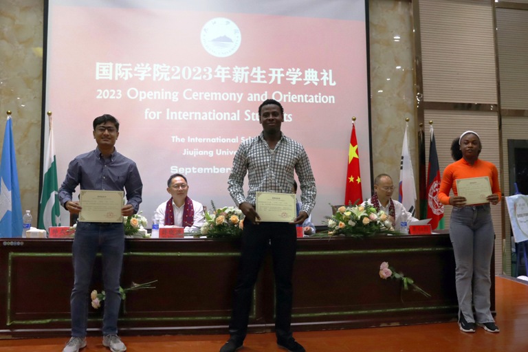 9月26日晚,九江学院2023年来华留学生开学典礼在香远楼三楼报告厅举行。副校长王万山出席开学典礼并致辞,勉励留学生们尽快融入九江学院大家庭。医学院、国际学院负责人、师生代表及2021级、2022级350余名新生参加活动。