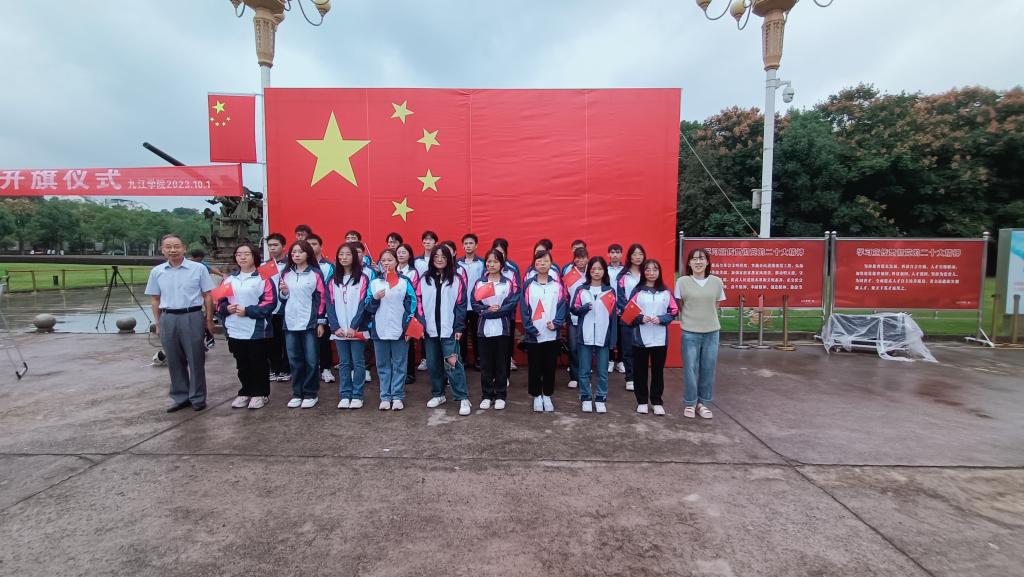 “学习二十大,永远跟党走,奋进新征程。请党放心,强国有我!”学子们激昂的青春誓言响彻九院校园。为热烈庆祝中华人民共和国成立七十四周年,进一步深化核心价值观教育,引导青年“扣好人生第一粒扣子”。10月1日上午,九江学院师生在西门广场举行“强国有我 青春有为”向国旗敬礼升国旗仪式,向祖国母亲深情告白。副校长鲁卫东,相关职能部门负责人、各二级学院党委书记、副书记及师生代表800余人参加升国旗仪式。