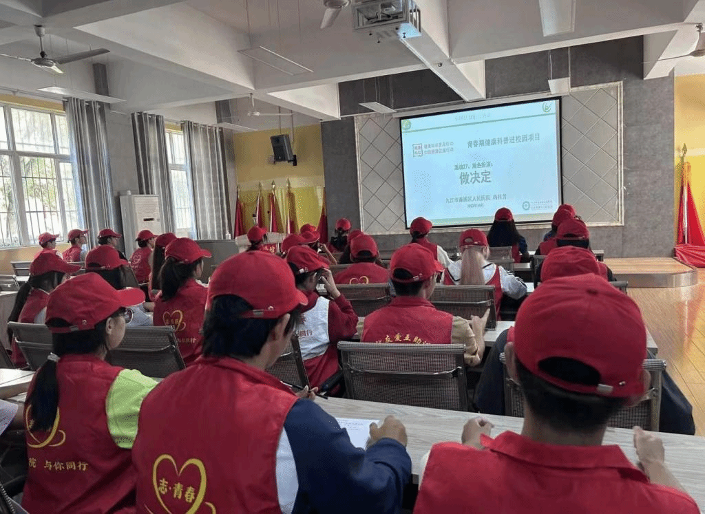 培训中,培训老师尚桂芳以角色扮演“做决定”为切入点指导如何开展青春健康同伴教育,结合情景案例讲解了青春期异性交往的生理变化和心理变化等方面的健康知识。濂溪区疾控中心骆春红科长对学校艾滋病疫情基本情况、艾滋病的传播途径以及预防措施等知识进行了讲述,内容涵盖了艾滋病的病原体、传染源、传播途径、易感人群等流行病学特点,HIV暴露前和暴露后的预防以及相关法律法规,并通过案例深刻地揭示了广大青年学生艾滋病传播广泛存在的风险。