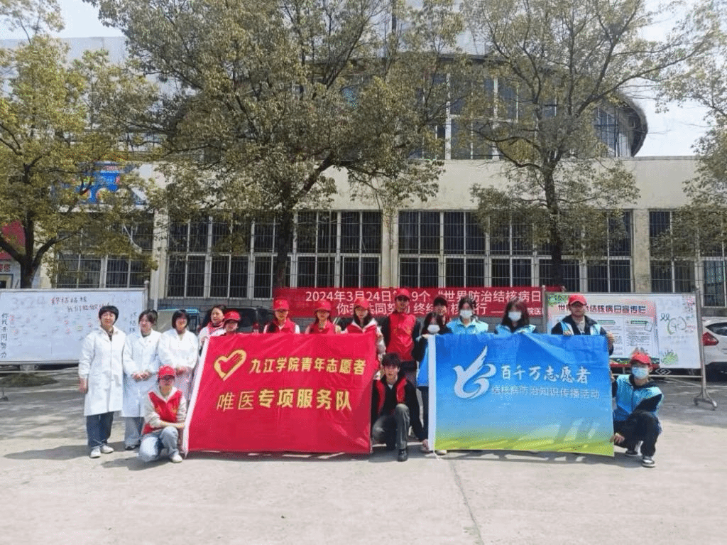 发挥党建示范引领作用,开展现场义诊及政策宣传  3月22日上午,校医院医务人员组织唯医志愿服务队的志愿者们来到五里街道学子路社区党群服务中心,参与了由九江市卫健委、濂溪区卫健委、五里街道办事处主办,九江市疾控中心、濂溪区疾控中心、九江市第三人民医院、九江市中医院、濂溪区中医医院、九江学院校医院等承办的“世界防治结核病日”宣传活动。