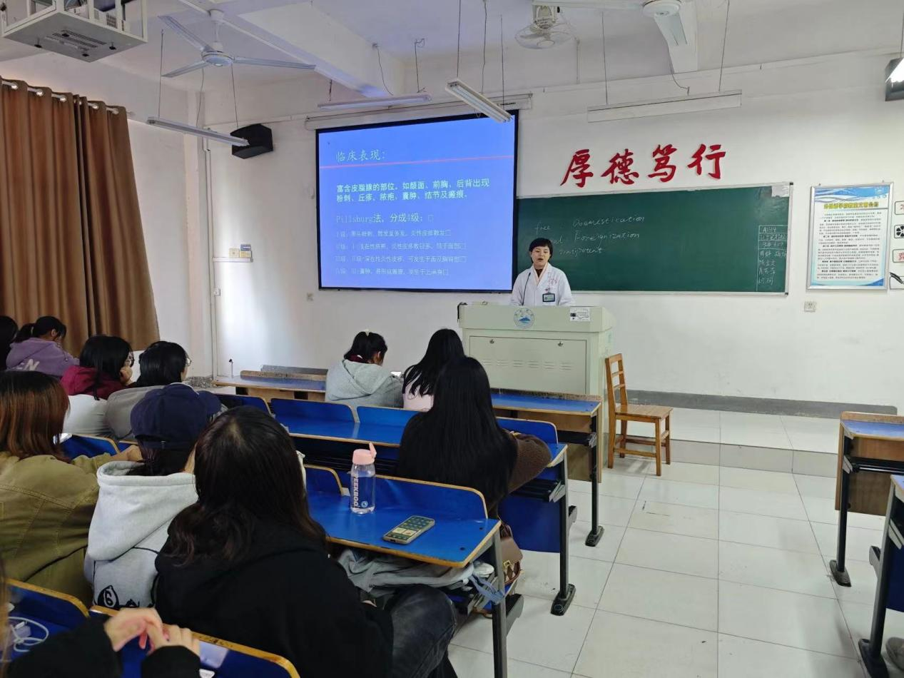 建立“112”宣传新模式,深入二级学院开展健康讲座 开学以来,校医院建立校园公共卫生责任包干制,即一个医生、一个护士加两个唯医志愿服务队员为小组,定点包干到各个二级学院开展健康宣教、培训等工作。3月20日,校医院医务人员分别在包干二级学院开展了结核防治讲座,讲座前,预防科组织医务人员进行PPT制作及对试讲,讲座时,为听课学生提供了丰富的小礼品,现场互动气氛活跃而热烈,大大提高了学生对疾病的知晓率。