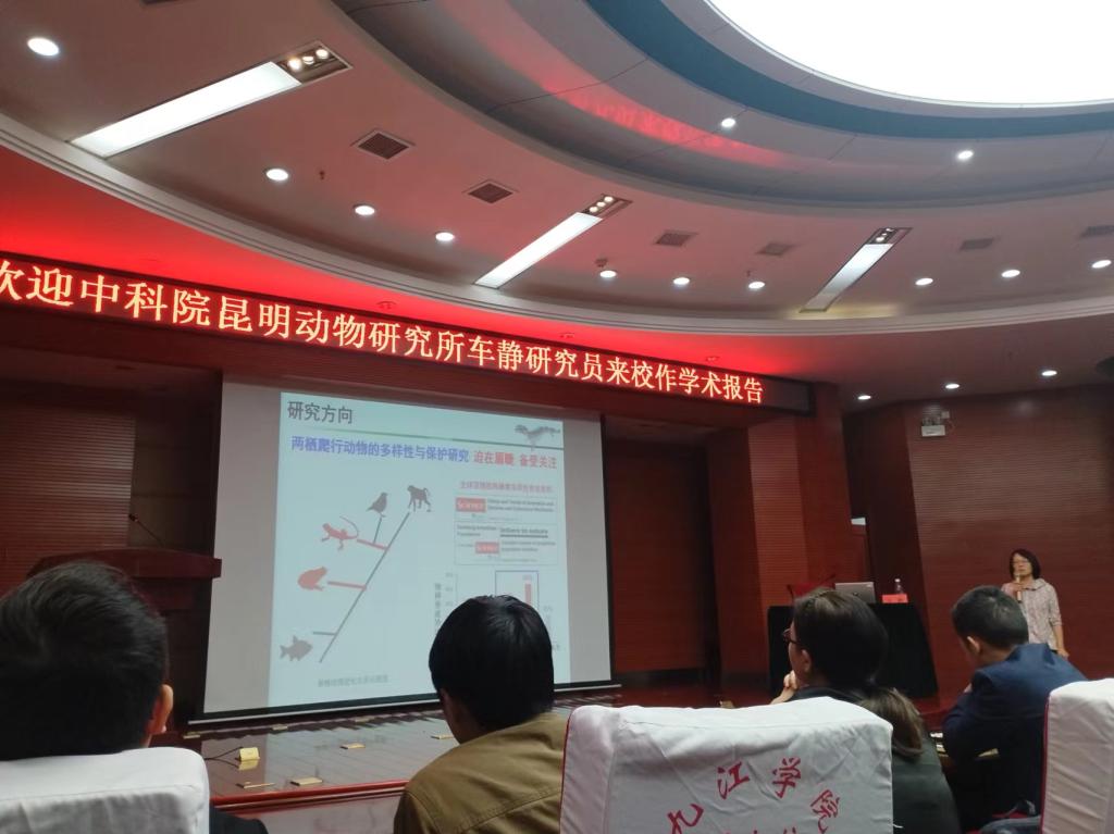 车静研究员为全院师生作了《“中国大鲵”之谜——机遇和挑战》的学术报告。学术报告主要回答了以下三个问题:从“中国大鲵”是否有多个物种组成?“中国大鲵”保护成效如何?“中国大鲵”野外纯种是否能够找到?