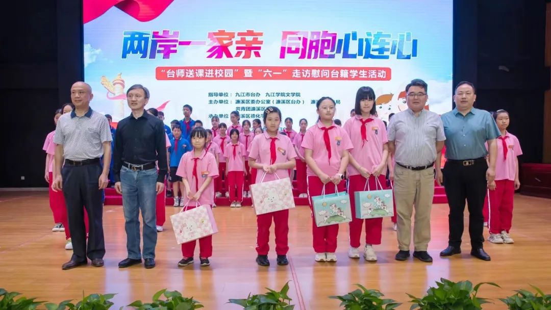 为更好地传承和弘扬中华优秀传统文化,共促两岸同胞心灵契合,在“六一”国际儿童节来临之际,由九江市台办、九江学院文学院联合指导,濂溪区台办、濂溪区教体局、共青团濂溪区委联合主办的“台师送课进校园”暨“六一”走访慰问台籍学生活动,于5月30日在濂溪区德化学校开展。