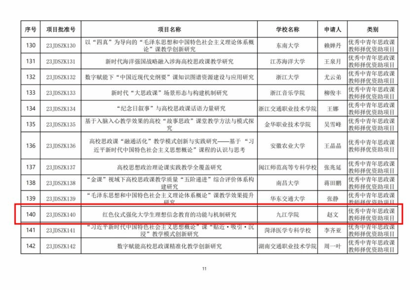 2023年九江学院九江红色文化研究中心专项研究课题立项项目汇总表