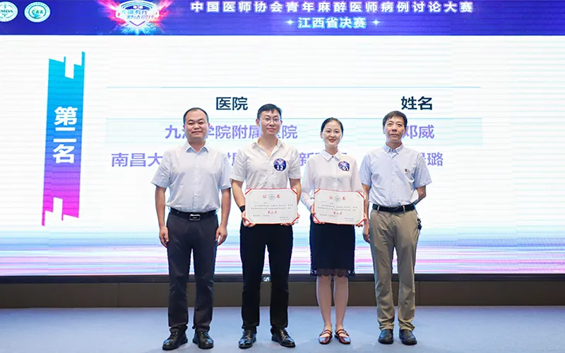 9月11日,中国医师协会“无痛有我 舒适同行”青年麻醉医师病例讨论大赛江西省总决赛在南昌举行。九江学院附属医院麻醉科医师邓威凭借出色的表现获得二等奖,并以全省第二名的优异成绩,成功晋级全国总决赛。
