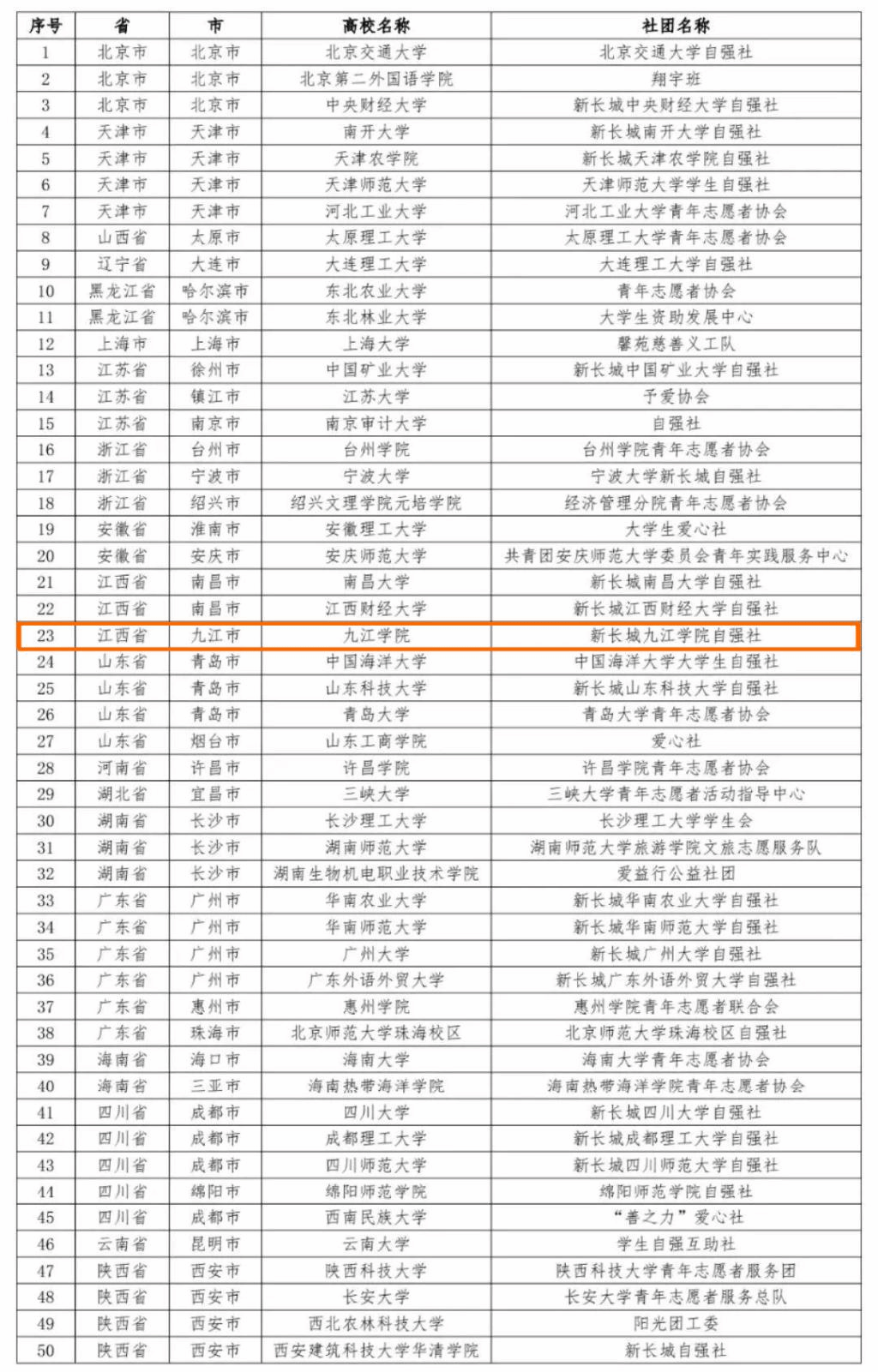 在近期由中国乡村发展基金会举办的2024年“善行100·温暖行动”中,经过严格的选拔和竞争,新长城九江学院自强社脱颖而出,并成功入选。