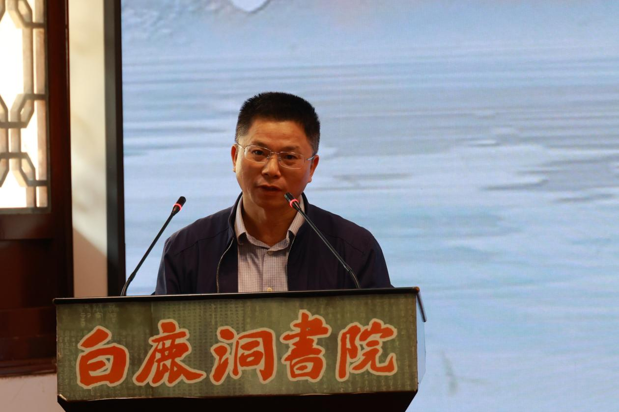 李松志在讲话中首先代表学校对长期支持九江学院教育教学工作的庐山白鹿洞书院表示感谢,对顺利结业的第九届国学班学生表示祝贺,对成功入选第十一届国学班的同学表示欢迎。他指出,刚刚举行的九江学院第二次党代会确定了“3353战略”,即做到“三个坚持”,实施“三步走”,突出“五大战略”,实现“三大提升”,其中一个重大战略就是突出文化育人,打造以传承弘扬白鹿洞书院文化为标志的大学文化特色。因此,在中国四大书院之首的白鹿洞书院举办国学班,意义重大。他要求,文学院和庐山文化研究中心要认真贯彻落实习近平文化思想和习近平总书记考察江西重要讲话精神,积极探索“学院+书院”的“双院制”改革,创新应用型人才培养模式,健全立德树人落实机制。他勉励同学们勤于思考,积极实践,按照习近平总书记的要求,争做有理想、敢担当、能吃苦、肯奋斗的新时代好青年。