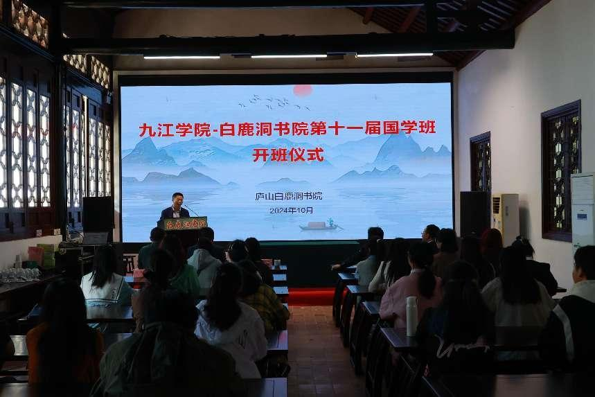九江学院国学班创办于2014年,至今已举办10届。自第十一届国学班起,依托国家语言文字推广基地,由教务处指导,文学院(庐山文化研究中心)与庐山白鹿洞书院联合举办。在白鹿洞书院举办国学班,接续了白鹿洞书院中断百余年的教学传统,对传承弘扬中华优秀传统文化具有重要意义,也是九江学院践行社会服务和文化传承创新使命,建设特色鲜明高水平应用型大学的重要举措。