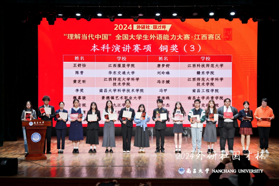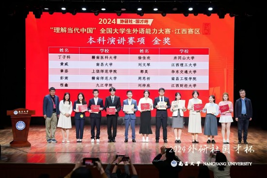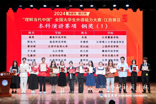 近日,在2024年“外研社•国才杯”“理解当代中国”全国大学生外语能力大赛江西赛区决赛中,我校学子们凭借出色的外语能力,再次斩获佳绩,共获得三项金奖、两项银奖和六项铜奖,展现了我校外语教育的丰硕成果。获得三项金奖的两位选手——外国语学院程鑫和陈浩将代表江西赛区征战“外研社•国才杯”国际传播综合能力赛项的全国决赛。