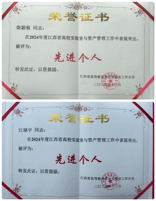 我校获评2024年度江西省高校实验室工作先进单位