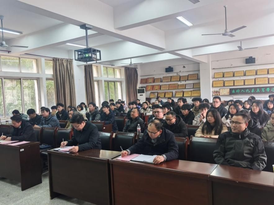 随后,化学化工学院举行第八期“赤心报国·绿色化工”报告会。吕仕铭作了精彩的报告,他深入剖析了教育强国战略背景下化学化工行业的发展趋势与人才需求,结合实际案例阐述了创新创业人才应具备的素质和能力,并勉励大家积极投身科研创新与创业实践,为建设教育强国贡献力量,其深刻见解与生动讲解赢得了在场师生的阵阵掌声,激发了大家的学术热情和创新思维。