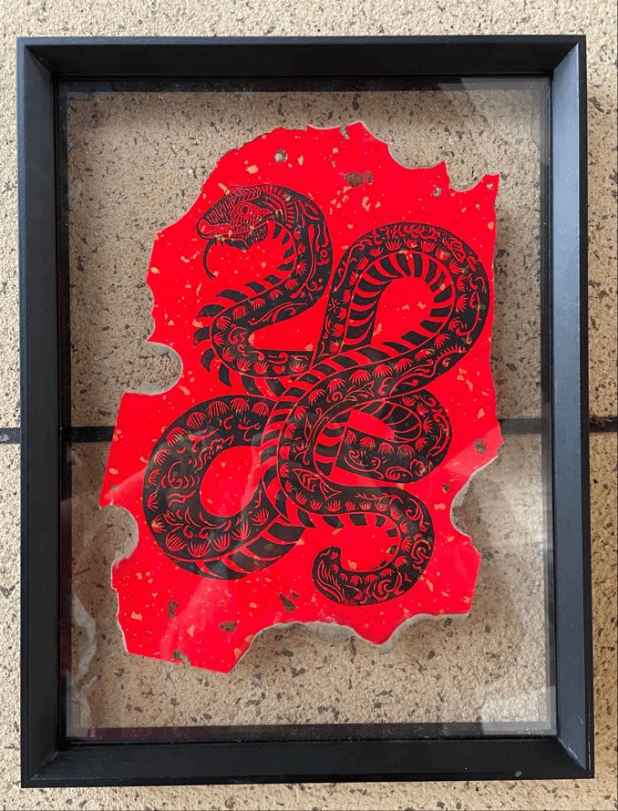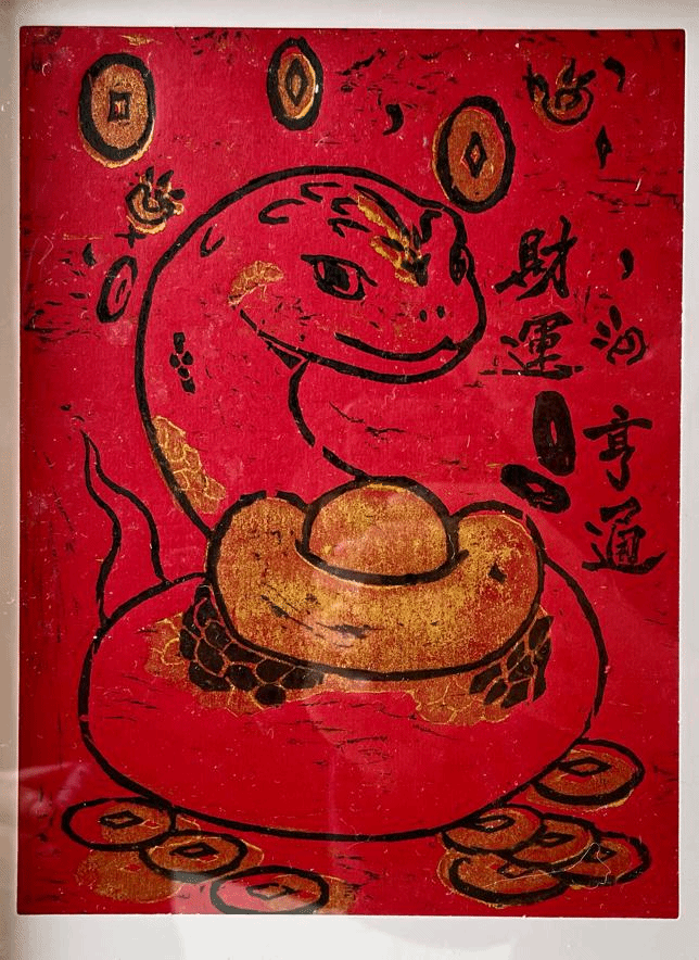 这场以“印蛇得福”为主题的新年版画展展出了九江学院艺术学院青年教师周婷及其指导学生们制作的40余幅蛇年主题版画以及部分版画基础课程的课程作业。