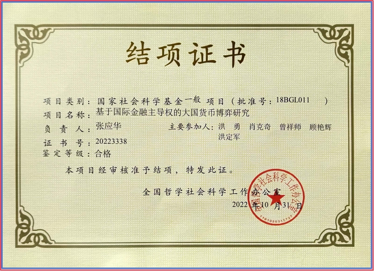 张应华博士国家社科基金结题证书