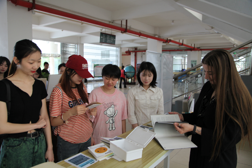 4月16日,“创意之书,艺术之美”手工书籍展览在我校图书馆一楼大厅正式开幕,27本由艺术学院视觉传达设计专业(2022级中外合作班)学生创作的创意书籍惊艳亮相,吸引众多师生驻足观赏。俄罗斯外教观展后赞不绝口:“书籍设计风格多样,本土元素运用巧妙,展现了中国文化的独特魅力。”