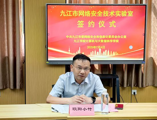 欧阳小竹高度肯定了此次合作的意义和必要性。他指出,当前无论是国家层面还是社会层面,对网络安全的重视程度都达到了前所未有的高度,市委网信办肩负着统筹协调全市网络安全工作的重任,与拥有人才优势和科研实力的九江学院合作共建平台,是推动工作落地的有效途径。市委网信办将依托该实验室平台,深化与九江学院的合作,重点在网络安全建设、网络安全大检查、攻防实战演练、网络舆情分析应对等方面深入探索实践。他特别提到,要通过实验室平台,在学生群体中发掘和培养网络安全领域的优秀实战型人才,并期待双方的合作能够真正落到实处、做出特色、创出品牌,为提升九江市网络安全综合防护能力和治理水平提供坚实支撑。