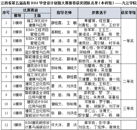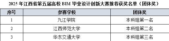 近日,江西省第五届高校BIM毕业设计创新大赛圆满收官。我校建筑工程与规划学院学子发挥出色,一举摘得一等奖5项、二等奖4项、三等奖3项,以总积分全省本科组第一的优异成绩,荣获大赛最高荣誉—本科组团体一等奖,实现了在该项赛事上的历史性突破。