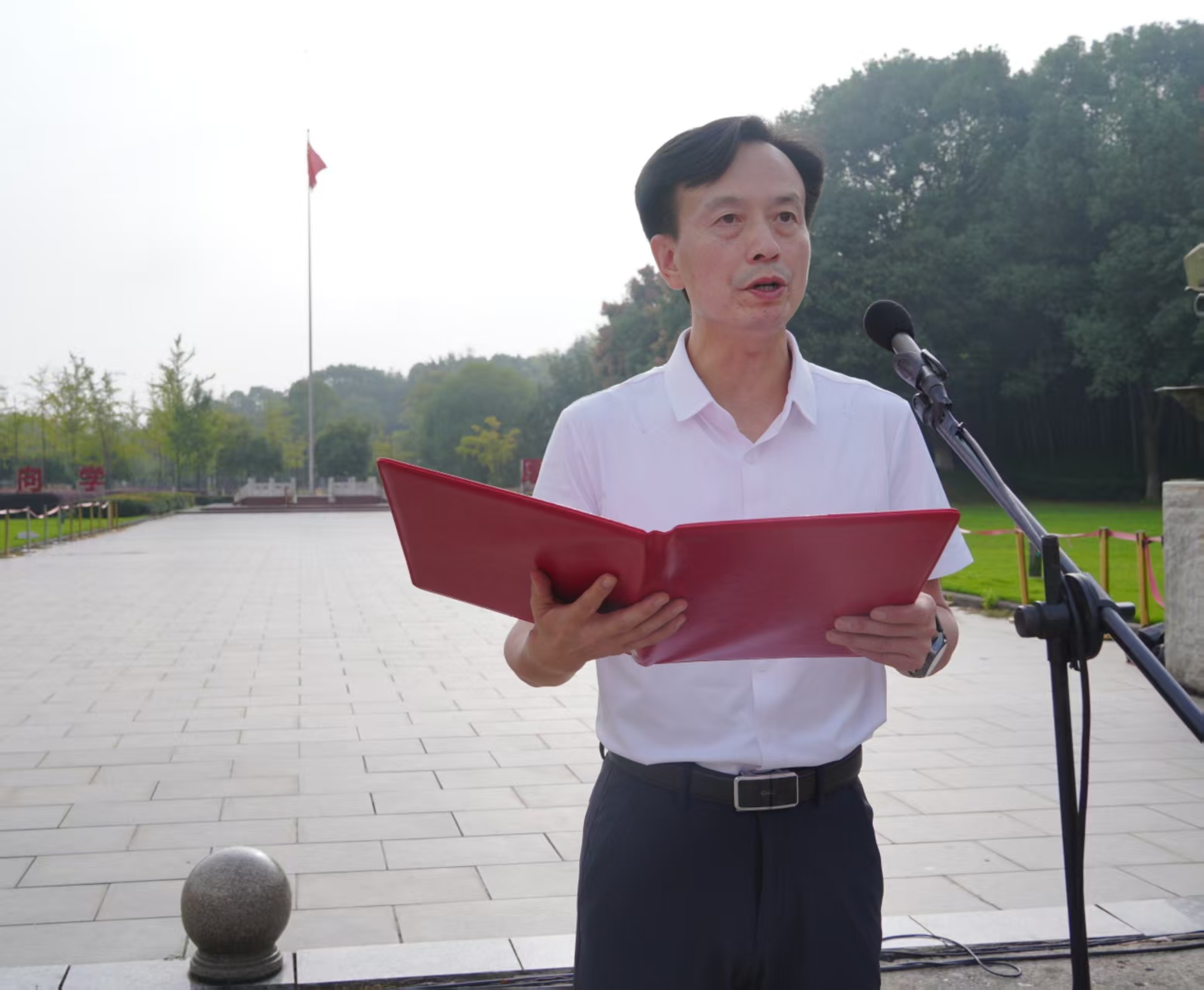 为庆祝中华人民共和国成立76周年,引导全校师生厚植爱国主义情怀,弘扬新时代民族精神,10月1日清晨,九江学院在西门广场举行主题为“我和祖国共成长” 的向国旗敬礼升国旗仪式。学校相关职能部门负责人,各二级学院党委副书记、团委书记,退役复学学生代表等师生代表共600余人参加仪式。校党委委员、副校长吴维勇出席活动并讲话。