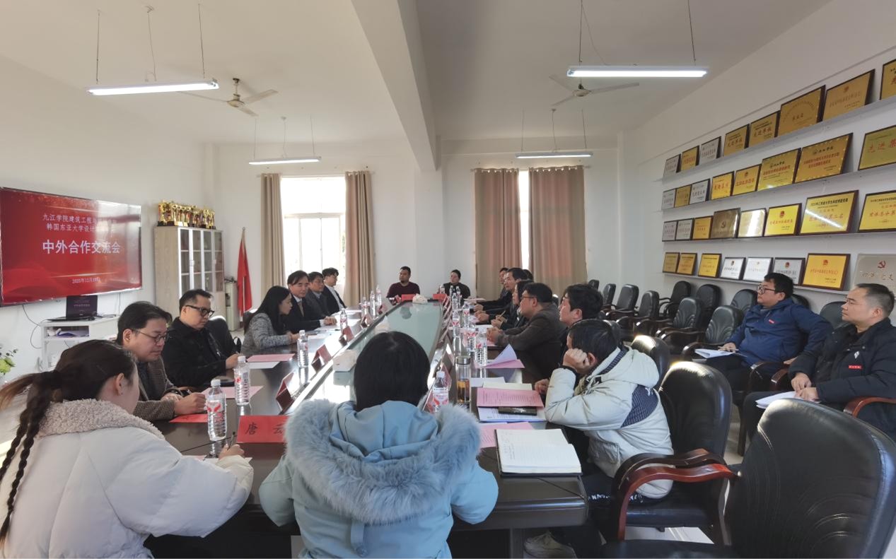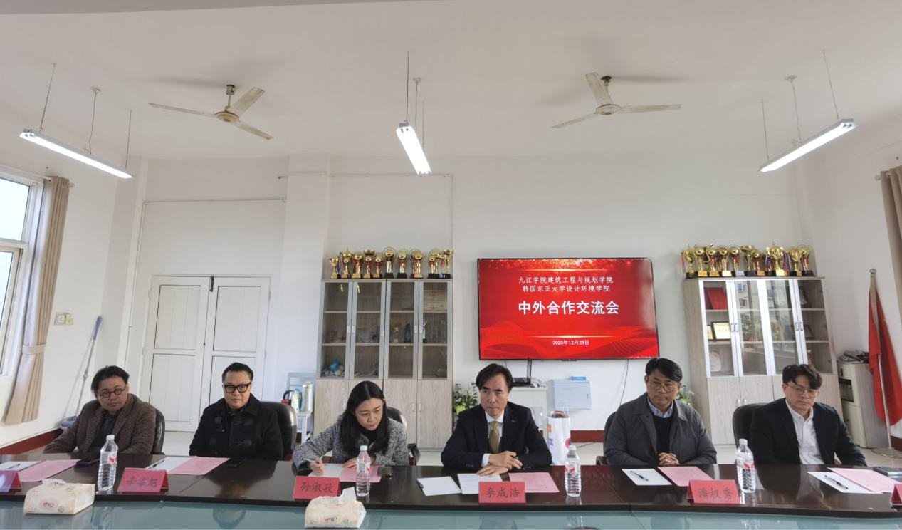 2025年12月29日,九江学院建筑工程与规划学院与韩国东亚大学设计环境学院合作交流会议在望庐楼举行。双方以“深化合作、互学互鉴、共育英才”为主题进行会谈,并签署了《合作协议书》,标志着两校学院层面在教育教学、学科建设、人才培养等领域的合作进入实质性推进阶段。