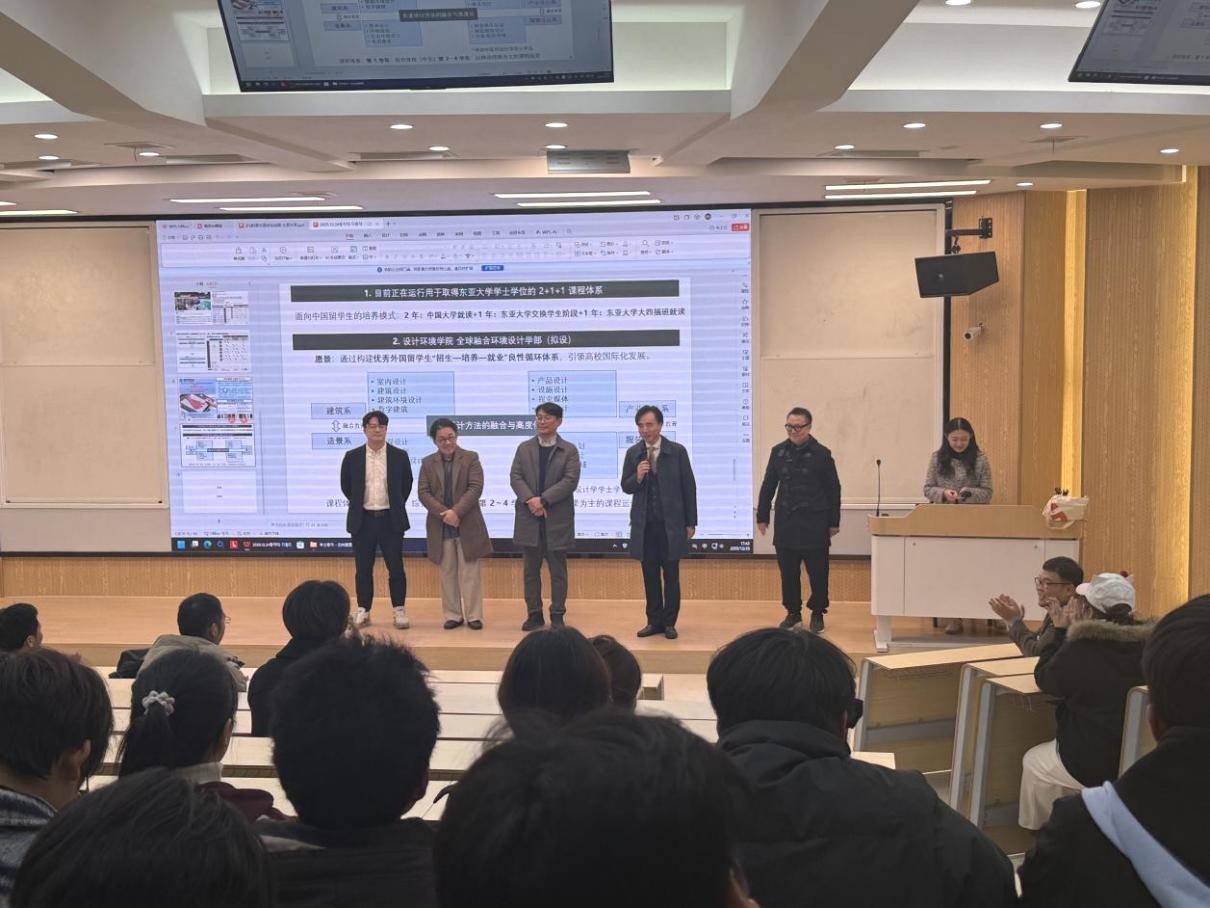 当天傍晚,东亚大学代表团在竞知楼阶二教室举行宣讲会,与建筑工程与规划学院建筑学、城乡规划、风景园林等专业的学生进行交流。会上,东亚大学教授介绍了该校设计环境学院的学科特色、国际化办学模式以及与我院的合作方向。同学们就课程衔接、联合工作坊、交换生申请及升学机会等话题进行咨询,代表们逐一解答。此次宣讲增进了学生对合作项目的了解,有助于后续交流活动的具体落实。