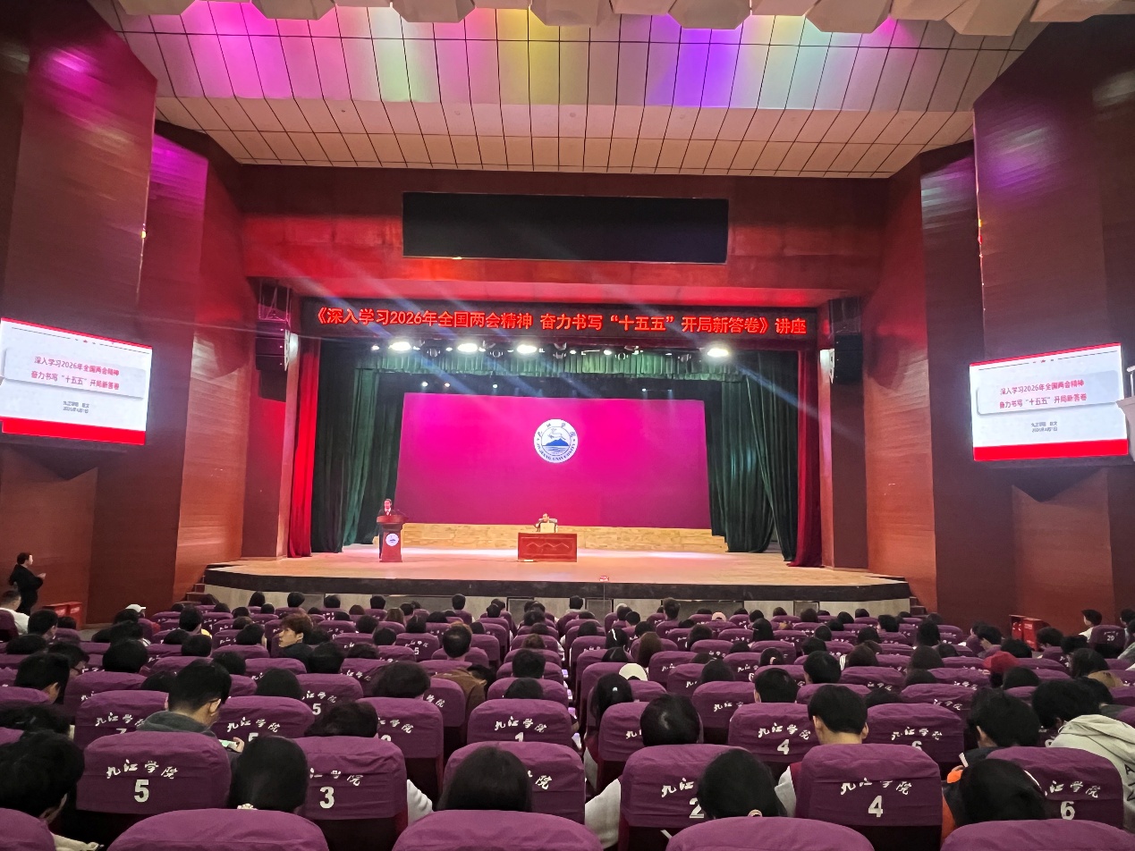 为深入学习宣传贯彻2026年全国两会精神,引导全校青年学子锚定“十五五”开局历史方位、坚定理想信念、勇担时代使命,九江学院团委特邀马克思主义学院赵文教授作题为《深入学习2026年全国两会精神 奋力书写“十五五”开局新答卷》的专题辅导讲座。青马工程学员、团学骨干及各学院青年学生代表千余人齐聚一堂,共学两会精神、共话青春担当。